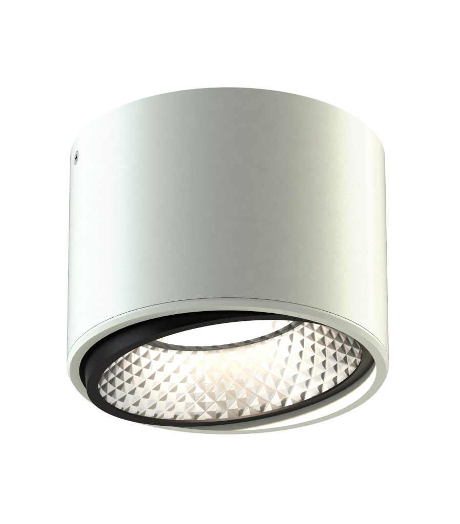 Die Lichtquelle der Deckenaufbauleuchte Opus 850 befindet sich in einem hochwertigen metallischen Reflektor, dessen Form und Farbe kundenspezifisch anpassbar ist.