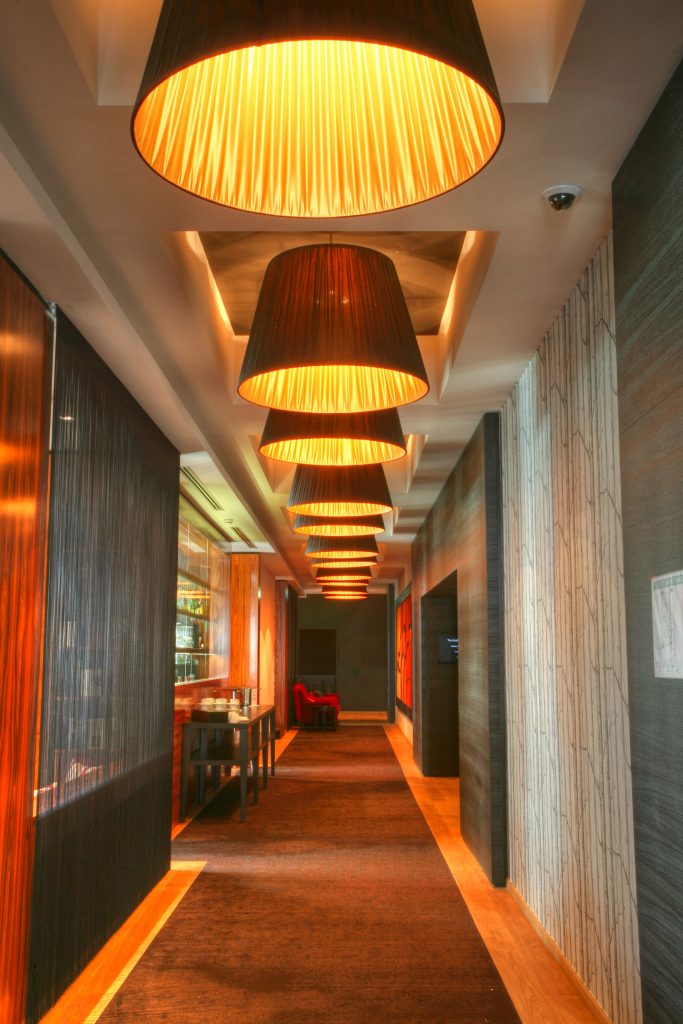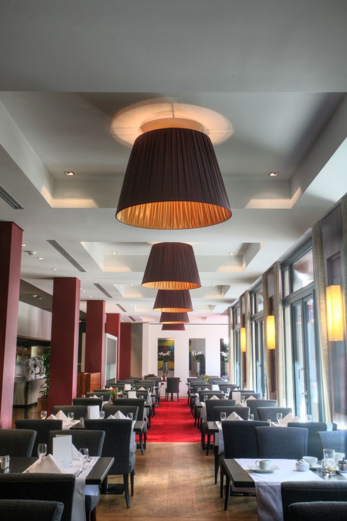 Ein runder Stoffschirm umschließt das Leuchtmittel der Deckenleuchte Velum, sorgt für ein warmes Flair in der Umgebung der Leuchte und ist speziell nach Ihren Wünschen gestaltbar.