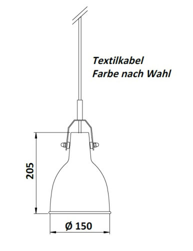 Die Lichtquelle der Pendelleuchte Calix 4 befindet sich in einem hochwertigen metallischen Reflektor, dessen Form und Farbe kundenspezifisch anpassbar ist. Das Textilkabel ist in Länge und Farbe frei zu wählen.