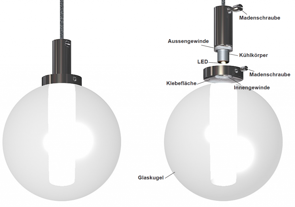 Ein hochwertiges Glas dient dem Leuchtmittel der Pendelleuchte Globo 4 als Reflektionskammer. Das Glas lässt sich in diversen Farben nach Ihren Wünschen gestalten.