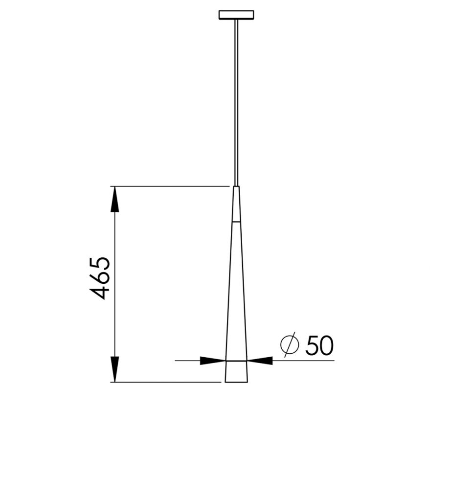 Ein kegelförmiger Metallschirm bietet dem Leuchtmittel der Pendelleuchte Lancetta 2 eine hochwertige Reflektionskammer. Bei metallischen Oberflächen sind RAL Farben oder spezielle Oberflächen wie Chrom oder Edelstahloptik möglich.