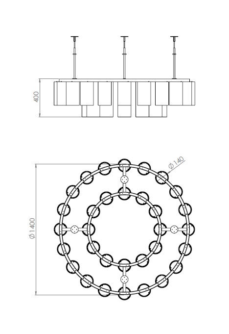 Die Ringleuchte Amadeus 1 wird von runden Stoffschirmen aus unserer hauseigenen Fertigung geziert. All unsere Schirme lassen sich in Maß und Schirmmaterial gemäß Ihren Wünschen anpassen.