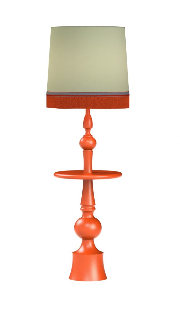 Um das Gesamtbild abzurunden, wird die runde Form des Schafts und des Schirms in der Form des Leuchtenfußes aufgenommen.