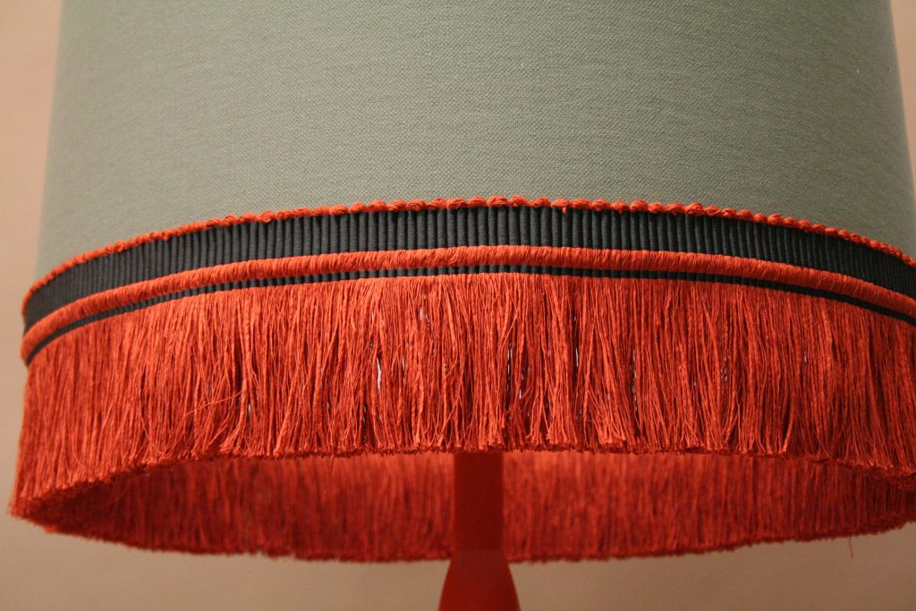 Ein runder Stoffschirm aus der hauseigenen Fertigung umhüllt das Leuchtmittel der Stehleuchte Carla 165. Unsere Stoffschirme sind individuell in Maß und Farbe gestaltbar. Ebenso können Sie Verzierungen wie die Soutache beliebig Ihren Wünschen entsprechend anpassen.