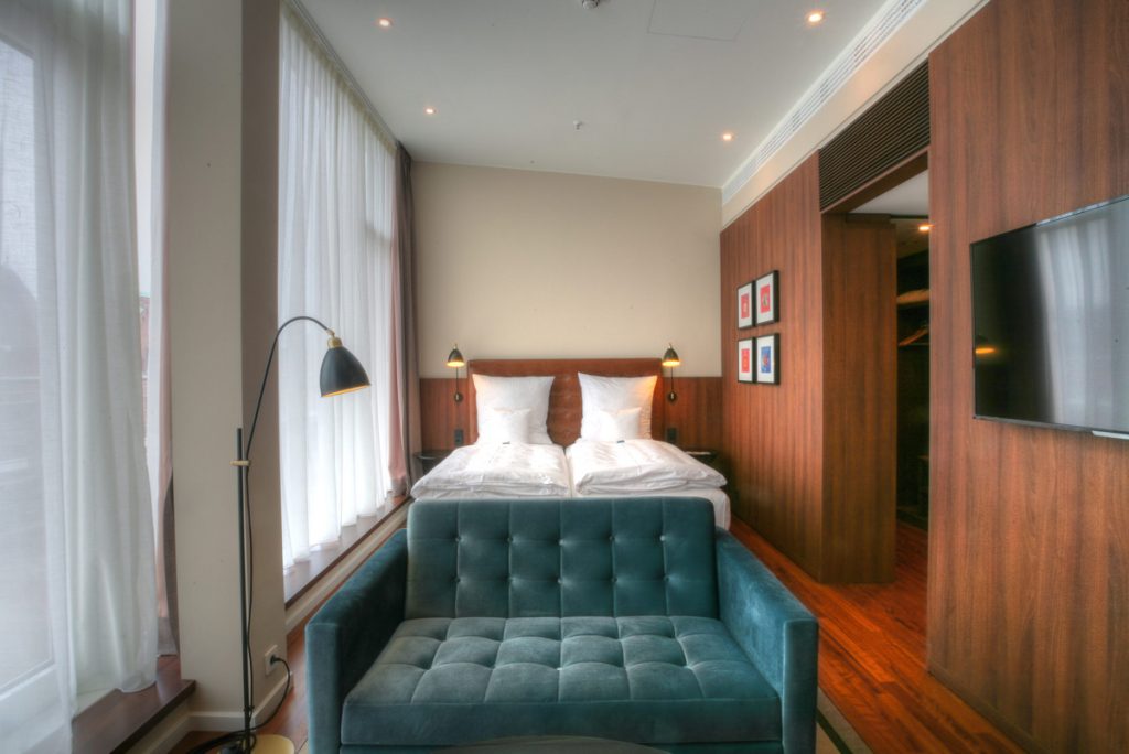 Der aus einem Rundrohr gefertigte Leuchtenschaft kann in Höhe und Oberflächenfarbe angepasst werden.