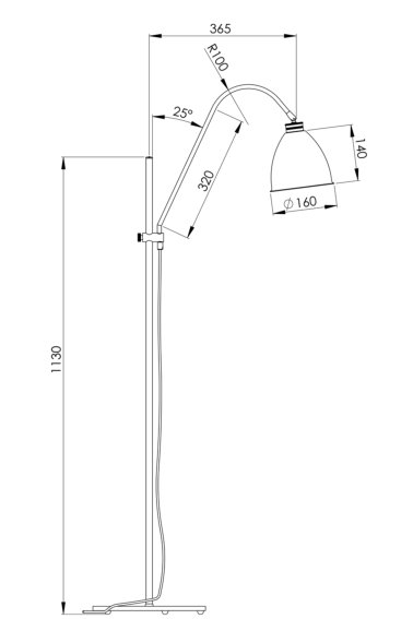Ein solider Metallschirm bietet dem Leuchtmittel der Stehleuchte Flora 110 eine hochwertige Reflektionskammer. Durch das Dreh- Kippgelenk am Schirm kann der Lichtstrom flexibel ausgerichtet werden.
