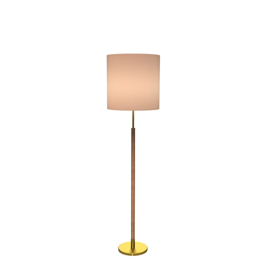 Ein runder Stoffschirm umschließt das Leuchtmittel der Stehleuchte Gelu 155, sorgt für ein warmes Flair in der Umgebung der Leuchte und ist speziell nach Ihren Wünschen gestaltbar.