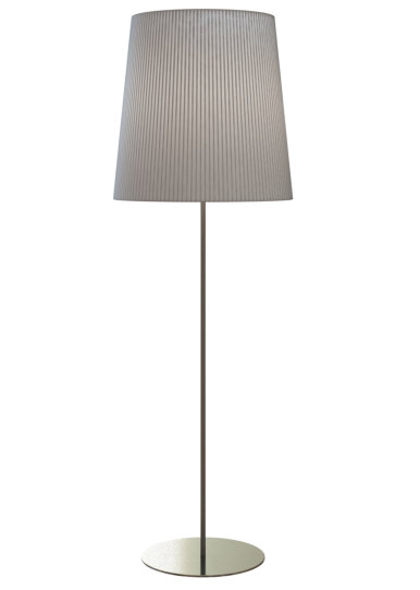 Ein runder Stoffschirm aus der hauseigenen Fertigung umhüllt das Leuchtmittel der Stehleuchte Gigas 215. Unsere Stoffschirme sind individuell in Maß und Farbe gestaltbar.