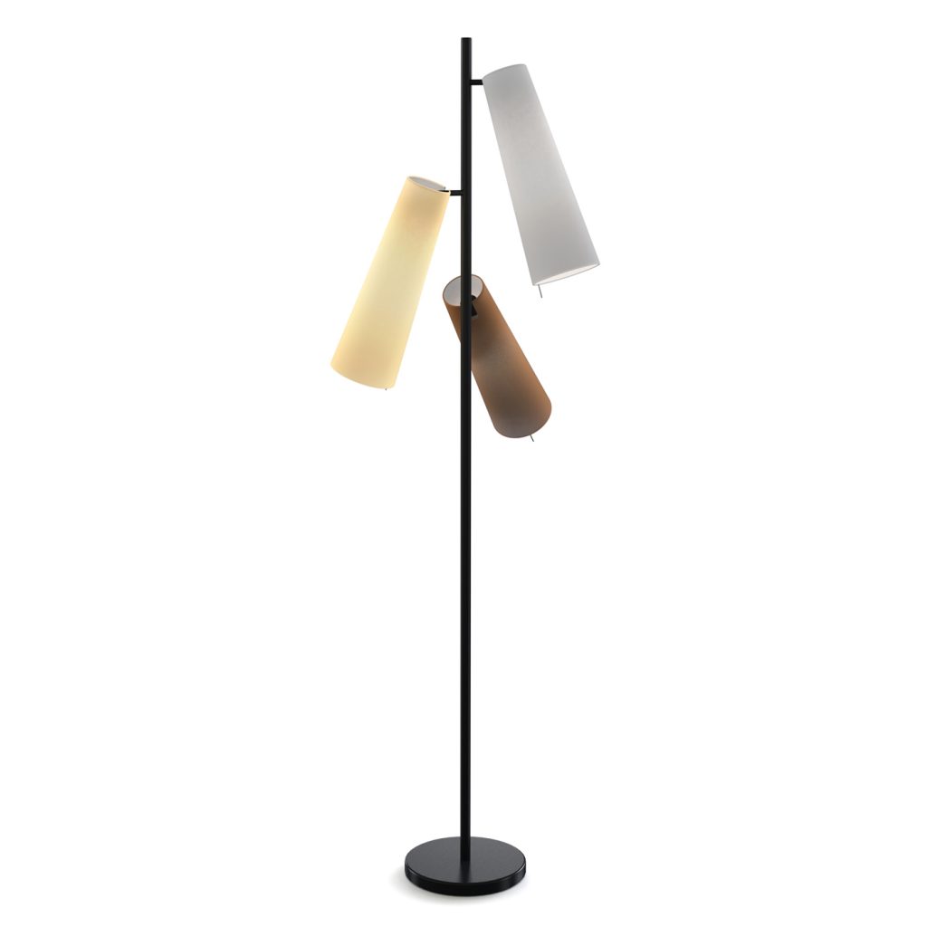Runde Stoffschirme umschließen die Leuchtmittel der Stehleuchte Lemures 210, sorgen für ein warmes Flair in der Umgebung der Leuchte und sind speziell nach Ihren Wünschen gestaltbar. Die Lichtströme sind durch Dreh- Kippgelenke variabel einzustellen.