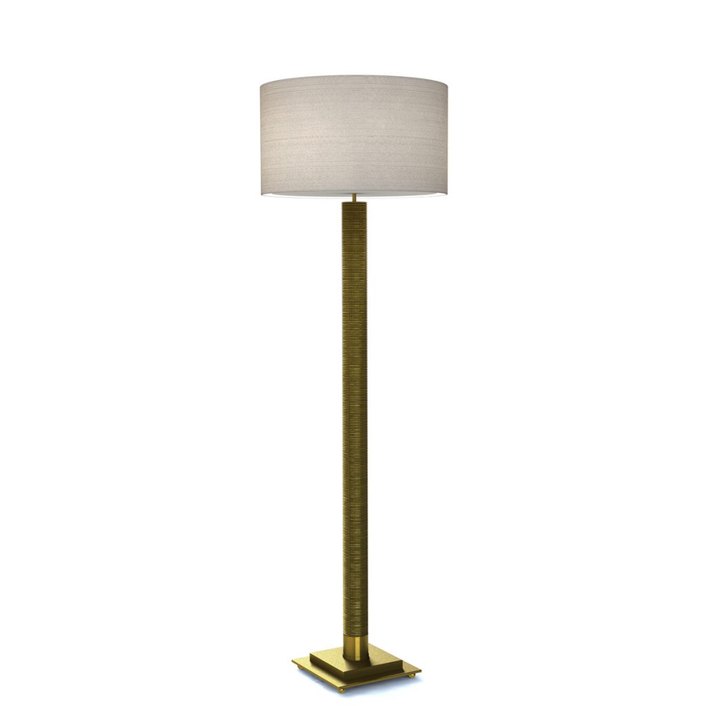 Das Leuchtmittel der Stehleuchte Lex 170 wird von einem runden Stoffschirm umschlossen. Gerade bei warmen Lichtfarben und hellem Stoffmaterial entsteht ein angenehm wohnliches Lichtgefühl.