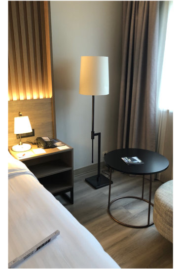 Der eckige Leuchtenfuß ist mit einer Metalleinlage versehen, um einen sicheren und stabilen Stand zu garantieren.