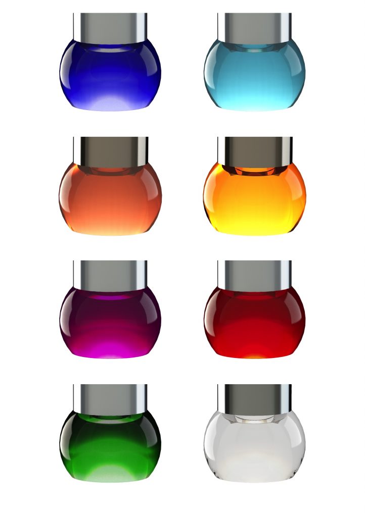 Ein hochwertiges Glas dient dem Leuchtmittel der Tischleuchte Drop 3 als Reflektionskammer. Das Glas lässt sich in diversen Farben nach Ihren Wünschen gestalten.