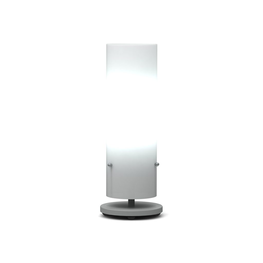 Das Leuchtmittel der Tischleuchte Remus 34 wird von einem Acrylschirm umhüllt.