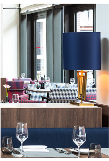 Ein runder Stoffschirm aus der hauseigenen Fertigung umhüllt das Leuchtmittel der Tischleuchte S 5377. Unsere Stoffschirme sind individuell in Maß und Farbe gestaltbar.