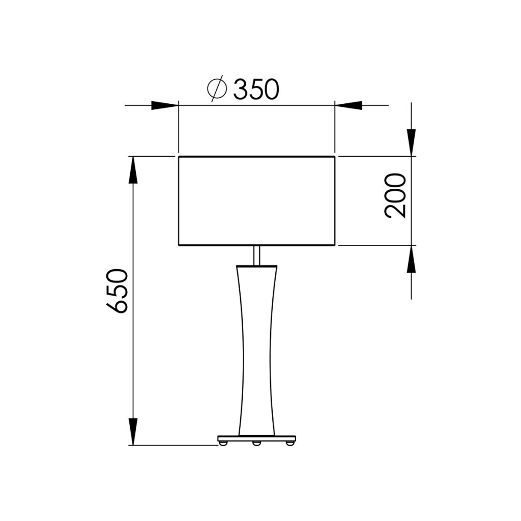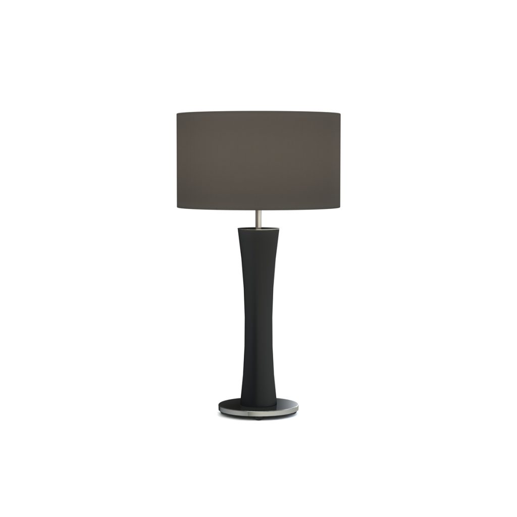 Ein runder Stoffschirm krönt die Tischleuchte Shogun 3. Maß und Farbe des Schirms können je nach Kundenwunsch angepasst werden.