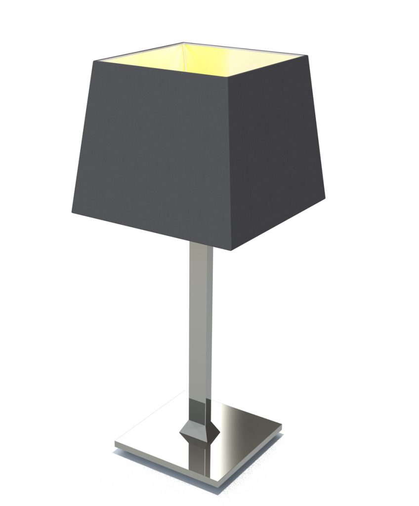 Ein eckiger Stoffschirm aus der hauseigenen Fertigung umhüllt das Leuchtmittel. Unsere Stoffschirme sind individuell in Maß und Farbe gestaltbar.
