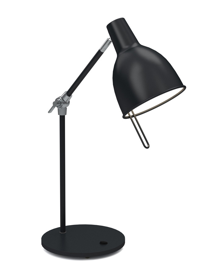 Ein solider Metallschirm bietet dem Leuchtmittel der Tischleuchte Calix 57 eine hochwertige Reflektionskammer. Ein Verstellpin ermöglicht die flexible Einstellung des Lichtstroms.