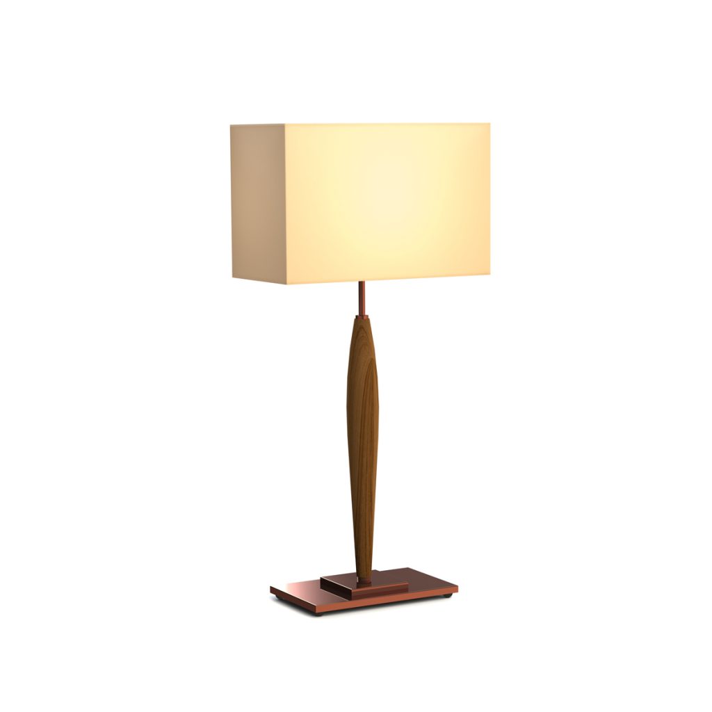 Ein eckiger Stoffschirm umschließt das Leuchtmittel der Tischleuchte Diva 73 und ist speziell nach Ihren Wünschen gestaltbar.