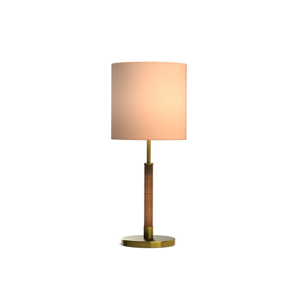 Um das Gesamtbild abzurunden, wird die runde Form des Schafts und des Schirms in der Form des Leuchtenfußes aufgenommen.