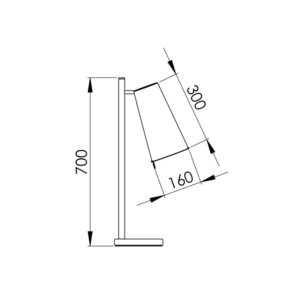 Die Tischleuchte Lemures 70 wird von einem konischen Stoffschirm geziert. Unsere hauseigene Fertigung ermöglicht es Ihnen den Schirm in Maß und Farbe frei zu gestalten.