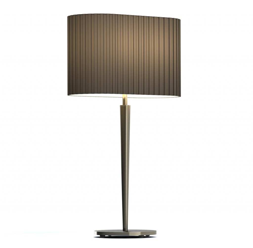 Ein ovaler Stoffschirm umschließt das Leuchtmittel der Tischleuchte Rasmus 71, sorgt für ein warmes Flair in der Umgebung der Leuchte und ist speziell nach Ihren Wünschen gestaltbar.