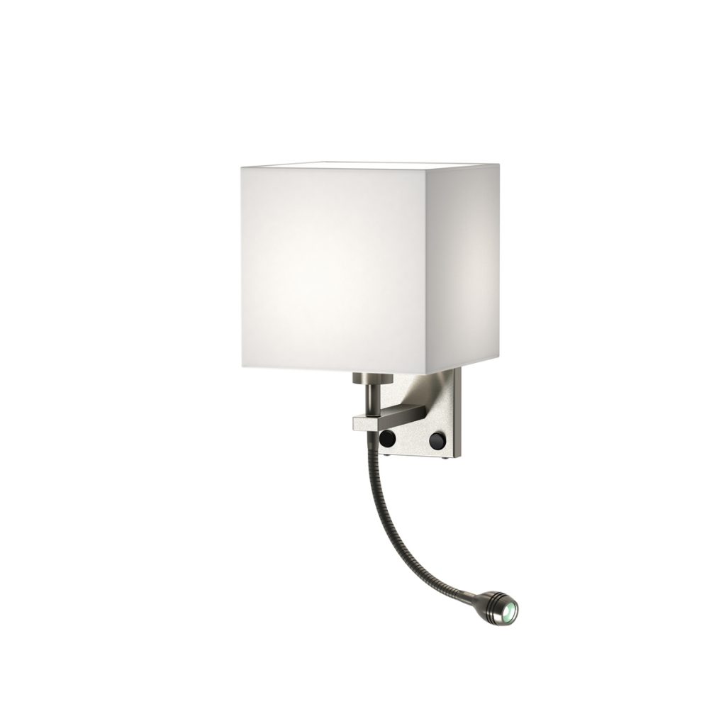 Durch ein separat schaltbares und flexibel schwenkbares Leselicht ist diese Leuchte eine ideale Lichtquelle über dem Nachttisch.